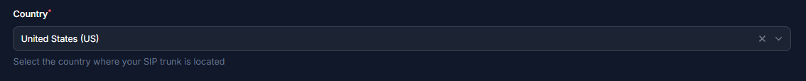 Select the country where your SIP trunk is provisioned.